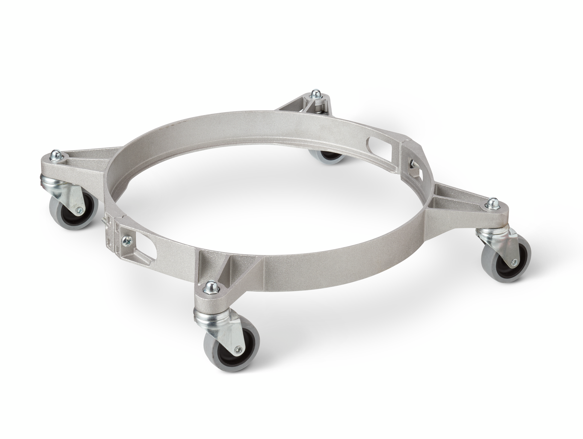 Compleet aluminium onderstel voor H2O, voorzien van zwenkwielen voor eenvoudige mobiliteit en manoeuvreerbaarheid.